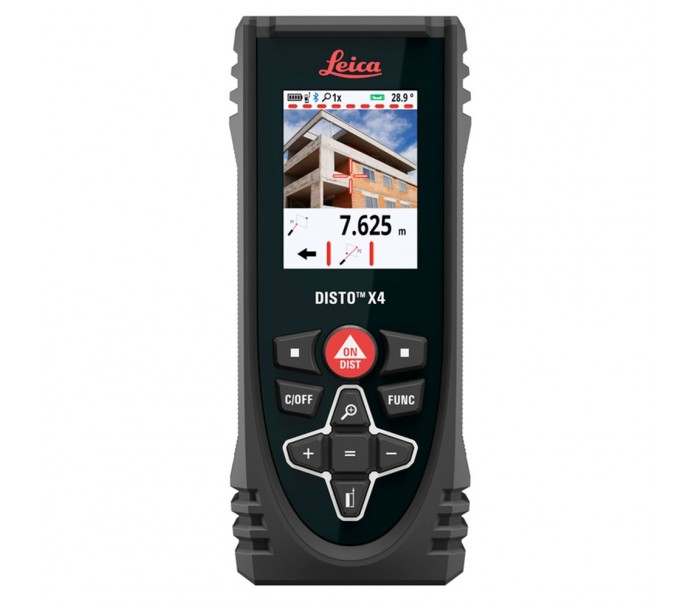 The DISTO? X4 is specifically designed to make high-precision outdoor measurements an easy task. It comes with a holster, hand loop and batteries.