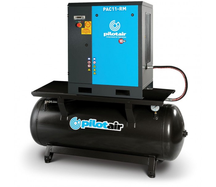 Tags: Air Compressors, Rotary Screw Compressors, Pilot Air, PILOT AIR 11KW Fixed Speed Rotary Screw Compressor Receiver Mounted PAC 11-RM